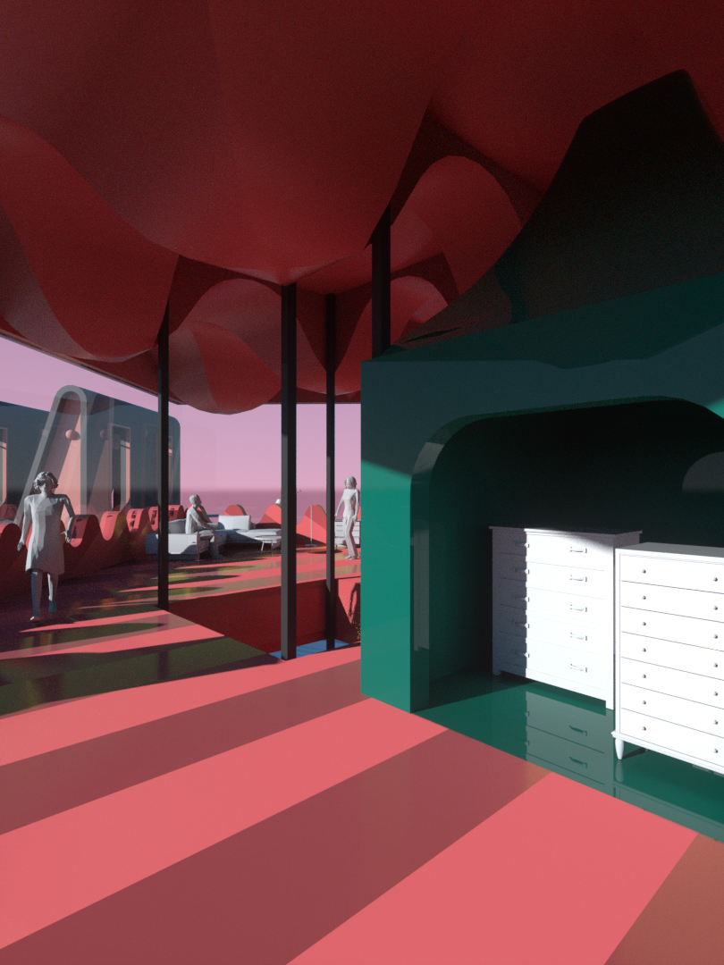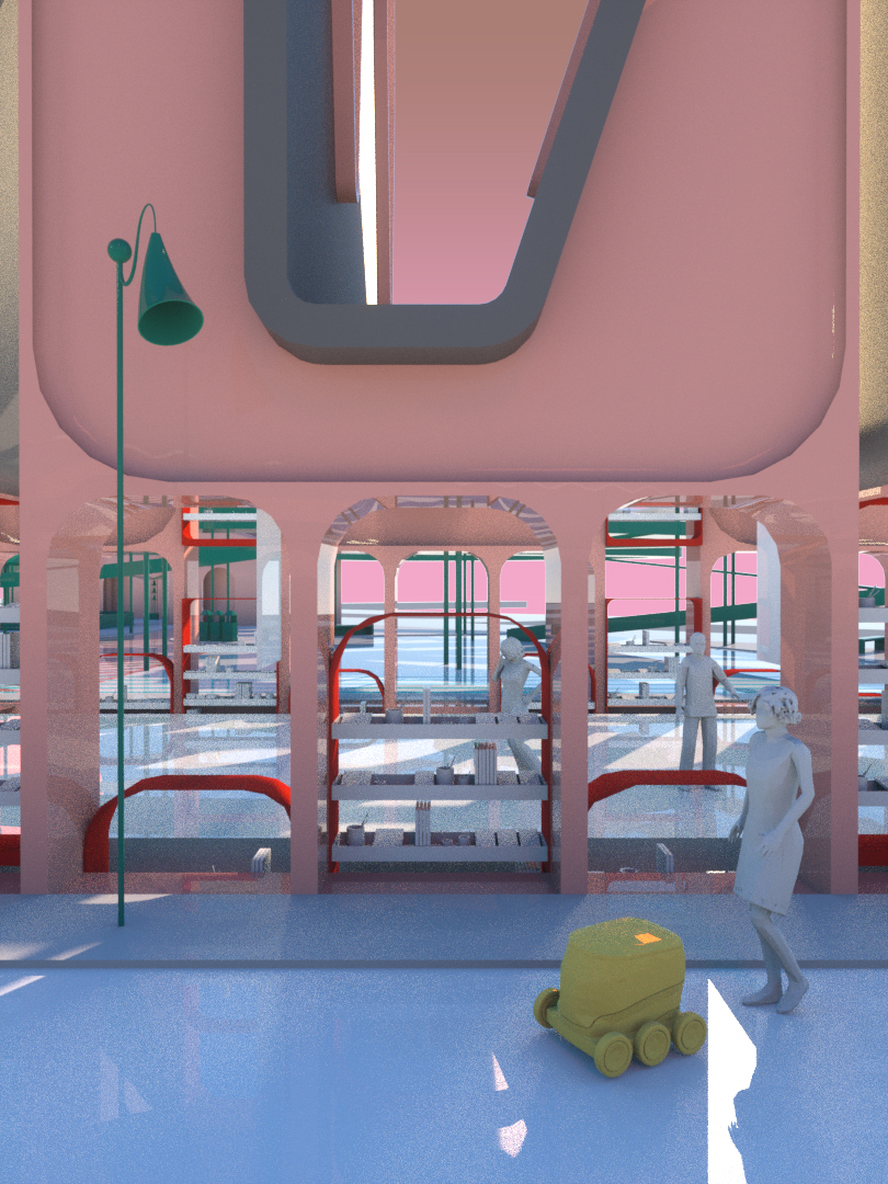 The decline of physical marketplaces and other retail spaces – places where people gather, experience, play and learn, is largely a consequence of online shopping. Therefore we as architectural designers must usurp the virtual market places and take from it what we can. After studying the mechanism of online shopping, we’ve dissected their processes and found that the interface is designed to accommodate two primary behavior types. The searcher and the browser. That item selection is overwhelming, the potential to keep scrolling is endless, the categorization of products provides a legibility. Spatial experience is architecture only redeeming factor over the virtual, and the virtual experience is a plethora of content and form – broken into digestible categories and this market is a three-dimensional representation. The programme of the pavilions are defined by categories, typically found on online shopping. They express in variable ways, through form, circulation, product display and interaction. We use this multiplicity of forms for legibility and memory to distinguish a difference amongst places.