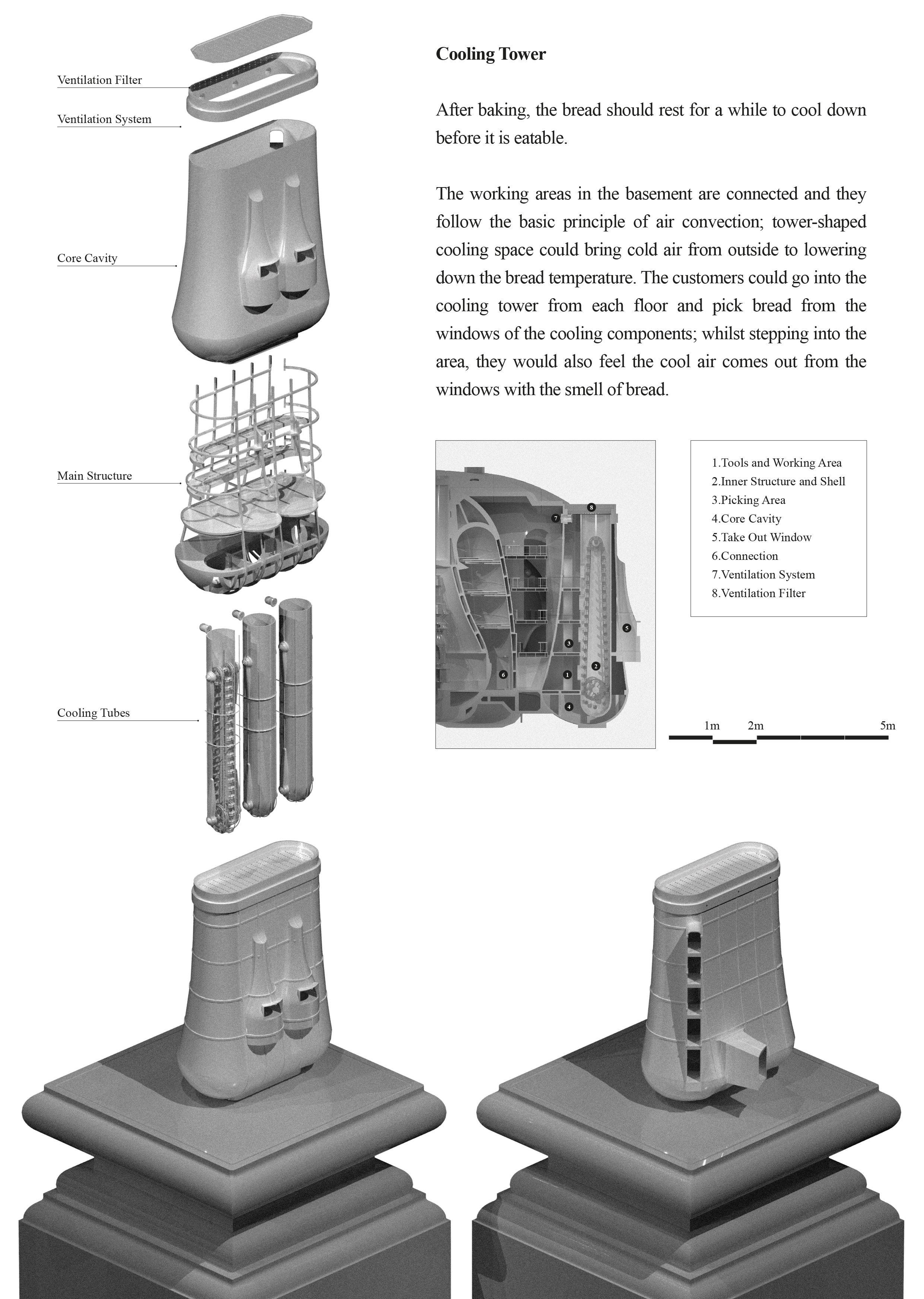 The displays are exhibited by deconstructing the process of baking; they demonstrate the special phenomena during the processing steps by using different architectural designs and develop them into the events that the public could experience in person. The aim of this project is to amplify the small physical and chemical reactions to the body scale and present the surprising perception. The public could experience those interesting phenomena in person when wandering around the space.